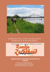 Iedere laatste vrijdag van de maand is een landelijk wandel initiatief. Het heet Rondje Zachtheid. Wandelen om te genieten van de natuur, te praten over de dingen des levens en verbinding met elkaar te maken. Inmiddels zijn er 22 plaatsen in Nederland aangesloten (en 1 in België).