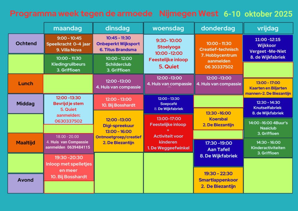 Een aantal Nijmeegse organisaties hebben voor deze week een speciaal programma ontwikkeld, zie flyer. Deze is m.n. voor mensen die het minder breed hebben.